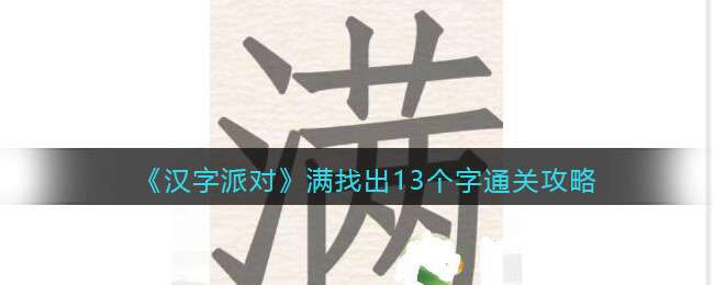 汉字派对游戏在抖音上很火,这款游戏拥有很多魔性搞笑的汉字关卡可以让玩家挑战!很多小伙伴都在抖音上玩汉字派对这款游戏!汉字派对满找出13个字怎么过?满是一个左右结构的字,左边为三点水,右边由多个部分组成。下面是创意手游小编给大家带来的《汉字派对》满找出13个字通关攻略分享,没有过关的小伙伴们一起来看看吧。