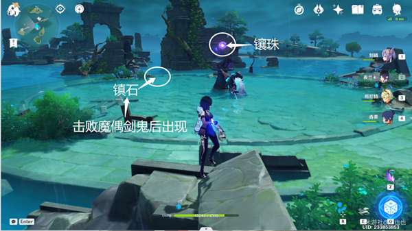 4、出现镇石,同时去镇物上方拿到镶珠。