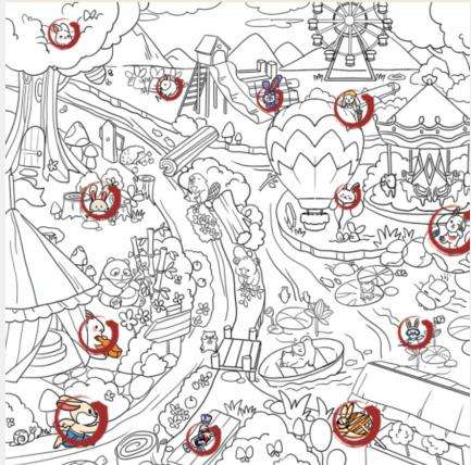 1、这一关我们需要在黑白线条画中找出所有兔,有一些只有部分在外面