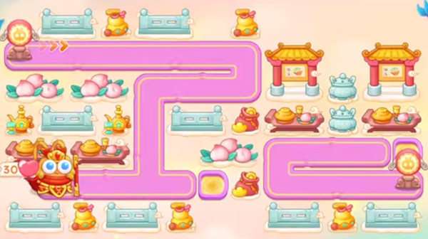 2.在兔子出来前的空隙,用雷达锁定右上方向的那个酒桌障碍物,打掉之后灯后面有钱了再建造一个雷达,然后锁定中间的这个蟠桃。
