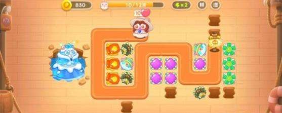 3.等到左侧两个道具打开后,可以在道路最右侧补充风扇,这样可以在冰兔死亡后通过攻击其他怪物,迅速清除冰块。当右侧风扇数量达到3个时,风扇攻击怪物时就可以完全清除冻住炮塔的冰块。不用担心冰兔死亡后冻住炮塔了。