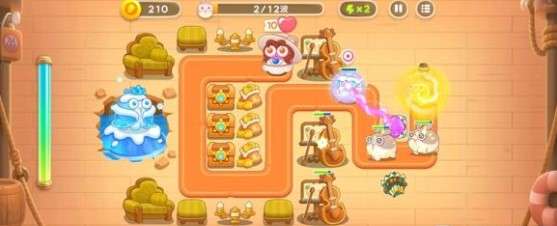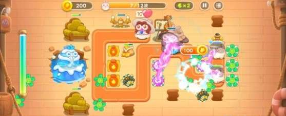 2.二、三波各会释放一个冰兔。冰兔冰冻范围覆盖攻击炮塔时可以先把它打残血,然后攻击左侧的道具,等到冰兔走远后再补充伤害。左侧的道具打开后可以放置一个魔法球防止漏怪。注意开局不要放减速炮塔,否则不好控制冰兔死亡的地点。