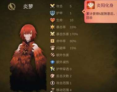 ③炎阳状态:加属性,回合结束对附近的敌人造成火焰伤害。