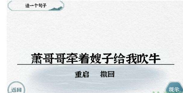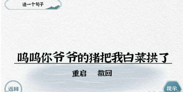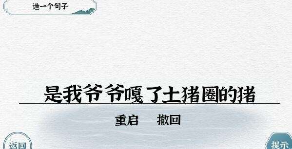 这一关玩家首先要长按【屎】字,拖动它变成【米】,然后将语句的顺序排列好就可以了。