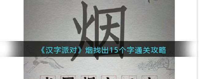 以上就是创意手游小编整理带来的汉字派游戏烟找出15个字攻略分享,更多精彩内容,请点击关注创意手游,小编将持续为您更新!