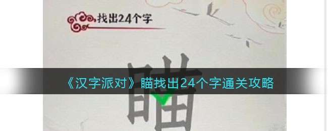 汉字派对游戏是在抖音上很火的文字休闲益智闯关手机游戏!很多小伙伴想知道汉字派对瞄找出24个字怎么过?这一关玩家需要从瞄上面找出24个汉字后才可以过关。下面是创意手游小编给大家带来的《汉字派对》瞄找出24个字通关攻略分享,没有过关的小伙伴们一起来看看吧。