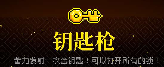 对准目标发射,可随机发射出金钥匙和炮弹,武器伤害低射速慢,功能性武器,打boss全靠近战技能。