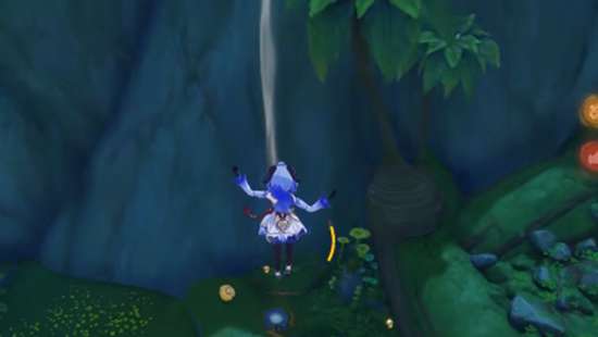 5、打开机关水位就会下降,走到左侧的山洞中。