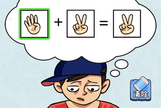 第二关:用第二个手势减去第一个手势即可,也就是【8-7=1】。