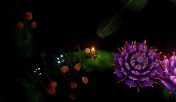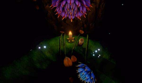 2、接着沿着藤蔓一直向前走然后在花的下面点燃蜡烛。
