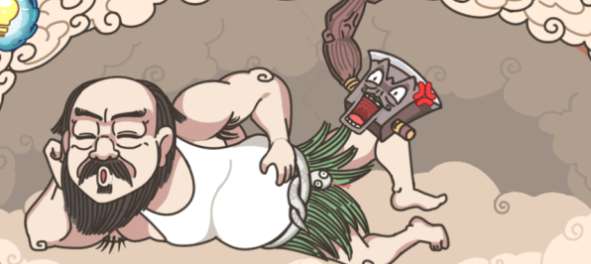 1、首先需要连续点击三次盘古脚边的斧子,然后斧子就会生气,将盘古打一顿。