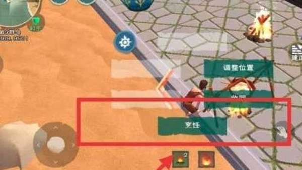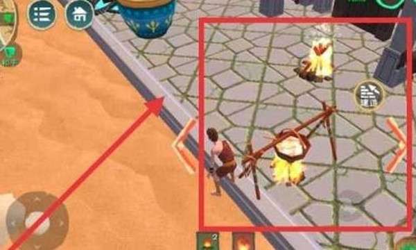 4、来到烹饪台,拿出炊具开始生火。