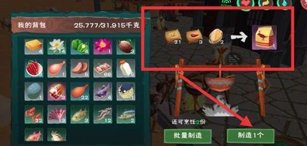 6、食材够的情况下选择批量制作,多制作几包饲料。