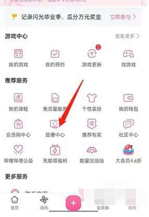 1、首先我们打开B站,点击右下角的【我的】,然后点击【直播中心】。
