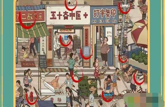 1、【怀旧捌零】关卡不和谐的地方分别是:大二酸菜鱼、二维码、消防栓、海绵拖把、共享充电宝、VR眼镜、电子秤、平衡车、摄像头、无人机