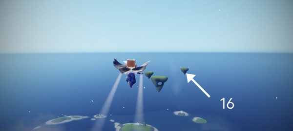 转身向后方飞去,在最远处的浮岛上有一个小金人。