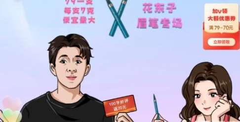 4、女生手里拿着眉笔芯,右边有优惠券,前面的盒子是赠品。