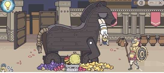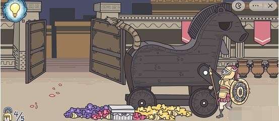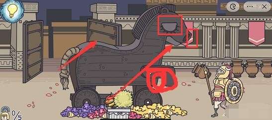 5、第四个是把马下面的水果拖到马嘴上,希腊士兵就会出现,快速点击;