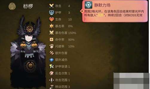 2、效果:周围2格光环,在该角色回合结束时使光环内所有敌人“沉默”,持续2回合。