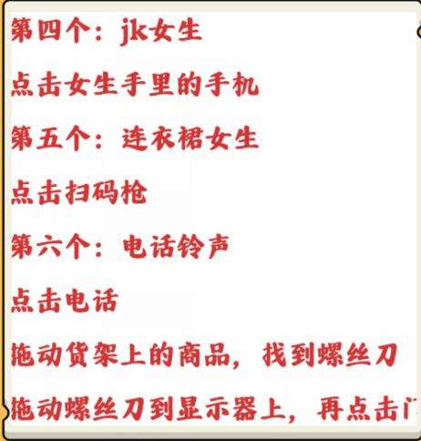 点击电话,拖动货架上的商品,找到螺丝刀,拖动螺丝刀到显示器上,再点击门