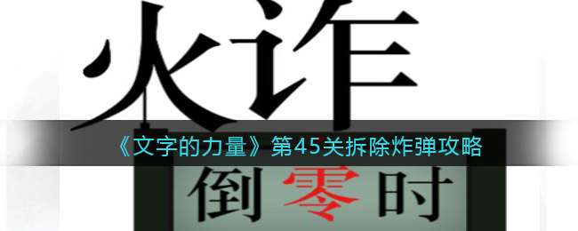 文字的力量是抖音上目前很火的精彩益智烧脑解谜闯关游戏,游戏中第45关拆除炸弹怎么过?这一关大家要在倒计时变为零之前将炸弹拆掉。今天小编就给大家带来了抖音小游戏《文字的力量》第45关拆除炸弹攻略图文详解,希望对大家有帮助哦!