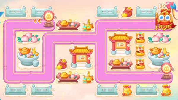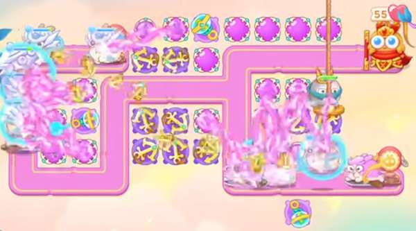 通关思路:这一关可以使用的炮塔有风扇,泡泡塔,魔法球和船锚,整体的难度不是特别的高,但是可能会有兔子偷家,需要时刻注意,后期的主力输出就是船锚和魔法球,船锚的溅射伤害能够很快的打掉兔子的血量,魔法球的全方位伤害也是很强力的炮塔。