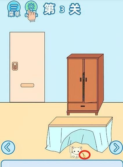 之后使用逗猫棒挑逗桌子下面的小猫咪,接着拿到猫咪旁边的钥匙