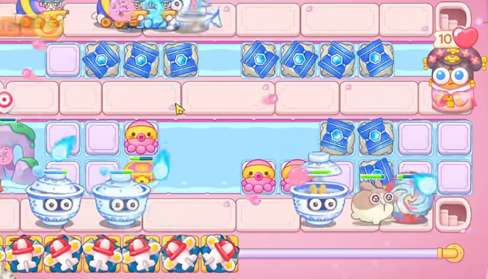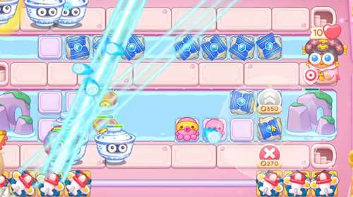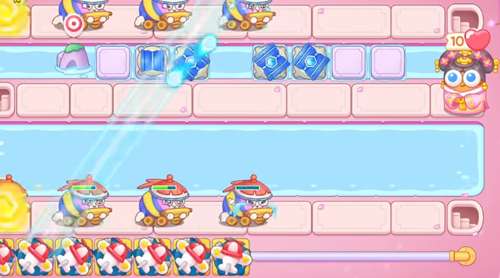 2、在上方水面上的格子建造冰桶,来减缓敌人的移动速度。