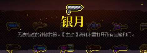 ①无法描述的武器。【主动】消耗水晶打开所有宝箱和门。