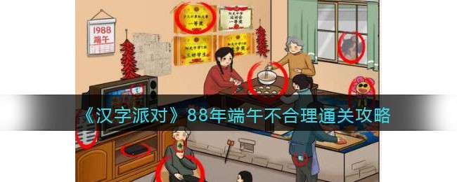 汉字派对游戏是在抖音上很火的文字休闲益智闯关手机游戏!游戏关卡88年端午怎么过?这一关图中的场景是端午节,一家人却在包饺子,大家需要找出12处不合理的地方。下面创意手游网小编就为大家带来《汉字派对》88年端午不合理通关攻略分享,希望可以给大家提供一定的参考帮助。