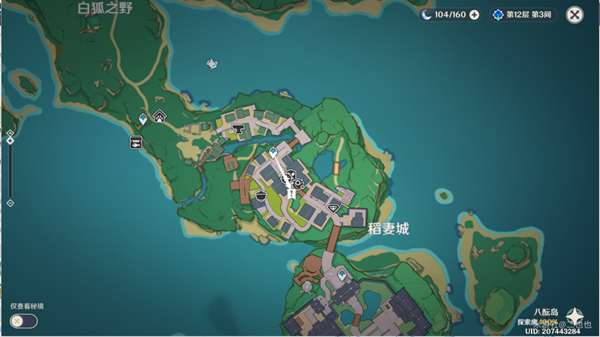 3、打开地图,传送到稻妻城。