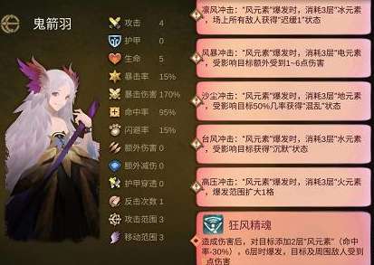 2、效果:造成伤害后,对目标添加两层风元素(命中率-30%),6层时爆发,目标及其周围敌人受到5点伤害。