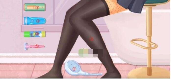 6、两条腿都处理干净后,在痘痘上涂上紫色的药膏,最后在腿上和脚上涂上蓝瓶的身体乳,再把袜子穿上就能通关啦