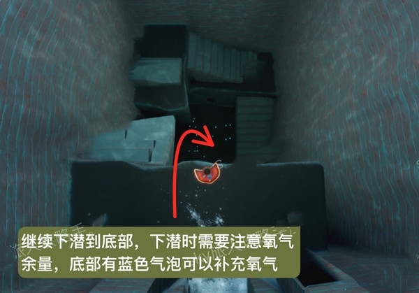 4、一直下潜,可以借助蓝色泡泡补充氧气。