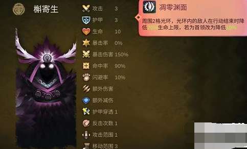 2、效果:周围2格光环,光环内的敌人在行动结束时降低20%生命上限,若为首领改为降低10%。
