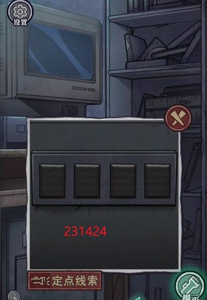 结束剧情探索得到【电闸圈】【录像带】,观看录像带得到下方方块的密码【231424】获得【工作铭牌】