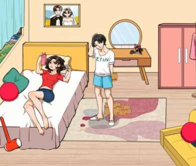 3、梳妆台下面有快递,男生后面有快递,点击女生的手机可以看见快递。