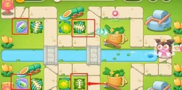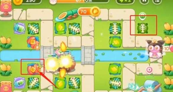 7、第七波左下方加一爆竹升满级,右下方加一鱼骨头。