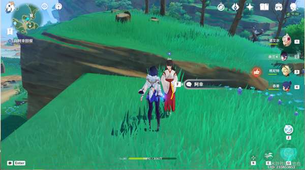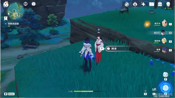 2、找到山坡上的巫女阿幸,与之对话触发任务。