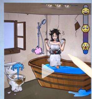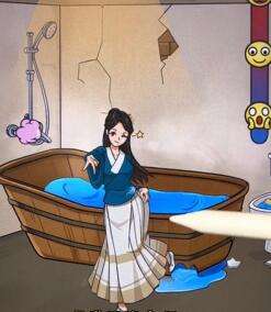 3、拖动开水壶往浴缸倒热水、再把甩脂机给美女。