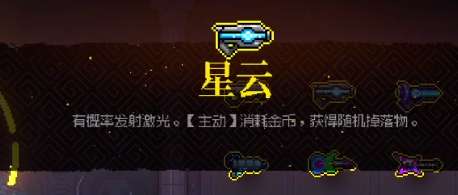 有概率发射激光。【主动】消耗金币,获得随机掉落物。