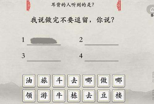 以上就是创意手游小编整理带来的抖音《玩梗大师》领豆油耳背的人听到的是通关攻略,更多关卡攻略,请点击关注创意手游更新!