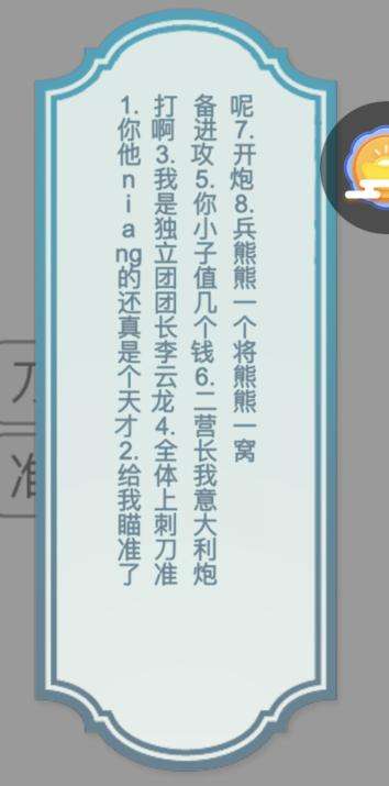1、进入关卡我们看到许多类似你他娘的这样的李云龙的名句,需要连连看