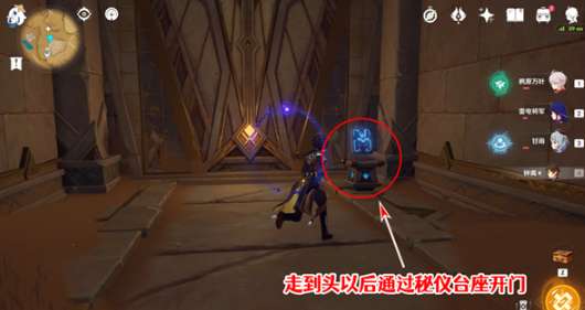 1、打开大门后一直往里走,启动边上秘仪台座。