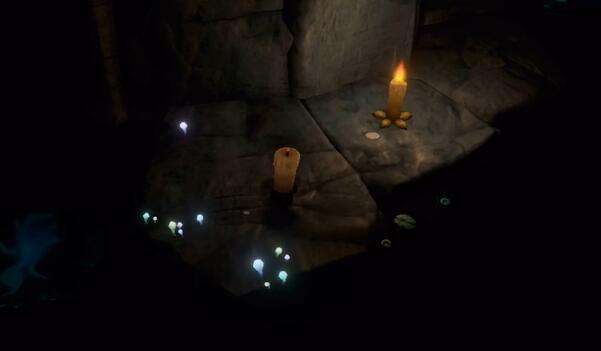 3、然后向右前方跳去在石头的凹槽内点燃蜡烛。