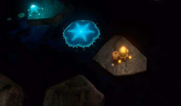 1、首先玩家进入游戏先往前走越过海星状的台阶到对面的岸上点燃蜡烛。