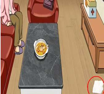 2、然后画面来到客厅如果妈妈说要喝鸡汤就点击旁边的体检单和纸条,如果说要捏肩的话,就点击柜子山的医药箱,把公文包拿回房间。