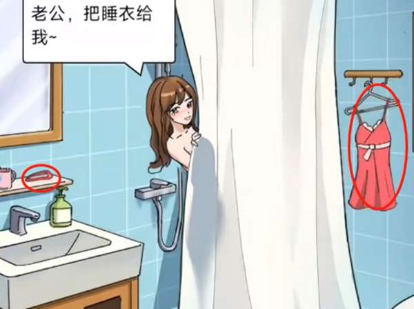 1、玩家进入游戏关卡后观察纸条,然后按照纸条上的规则,我们使用夹子把老婆的刘海给夹上去,之后把旁边的睡衣给她。