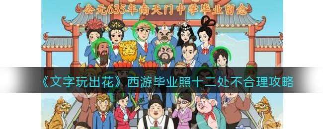文字玩出花小游戏是一款文字题材闯关冒险手机游戏,关卡西游毕业照十二处不合理怎么过?这是一个看图找茬的关卡,大家要找出不合理的地方。下面是创意手游小编给大家带来的《文字玩出花》西游毕业照十二处不合理攻略,还没有通关的小伙伴可以来看看,希望能帮助大家!