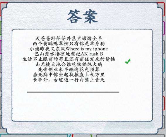 1、这一关是和古诗押韵的玩法,难度不大,多读读就可以连出来